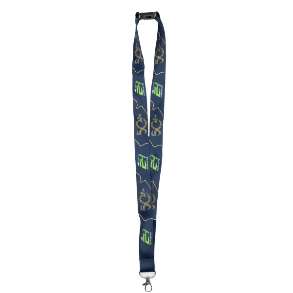 The 50th Edition and 24h logo is printed on the front of the blue lanyard. The quick-release fastener allows the lanyard to be opened. Various things can be attached via the snap hook.