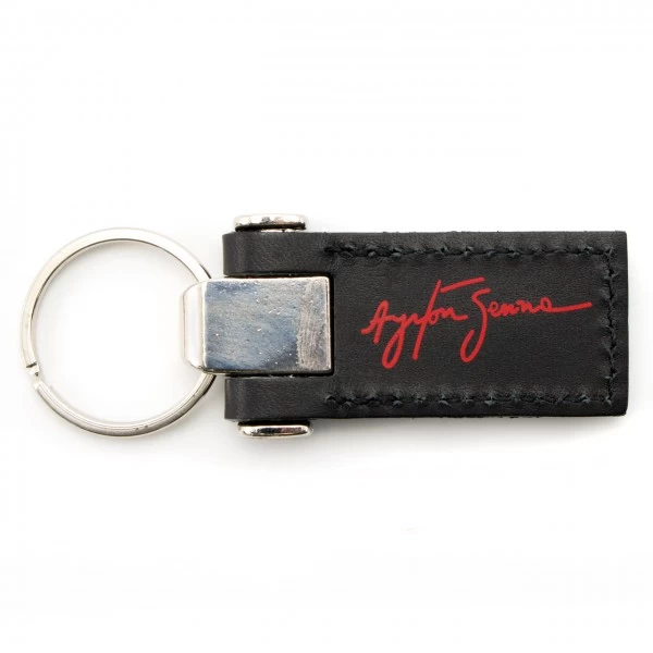 Leather key ring from our McLaren collection. On one side there is the signature of Ayrton Senna in red writing. On the other side, there is a small metal plate with the McLaren imprint.