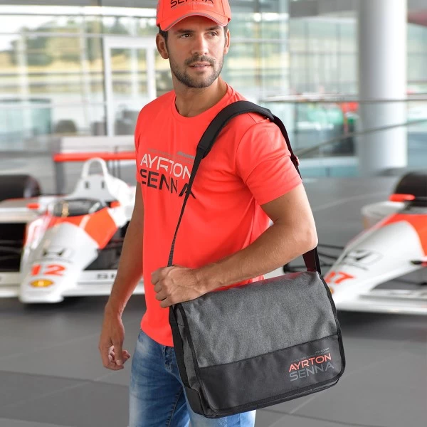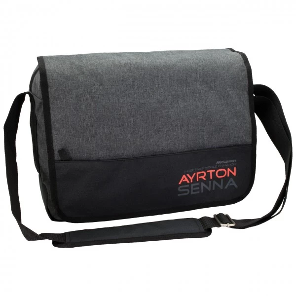 The practical Ayrton Senna Messenger Bag from our McLaren collection with long shoulder strap is perfect for everyday use and the race track. The bag in grey anthracite has a large logo print in the popular vintage design.