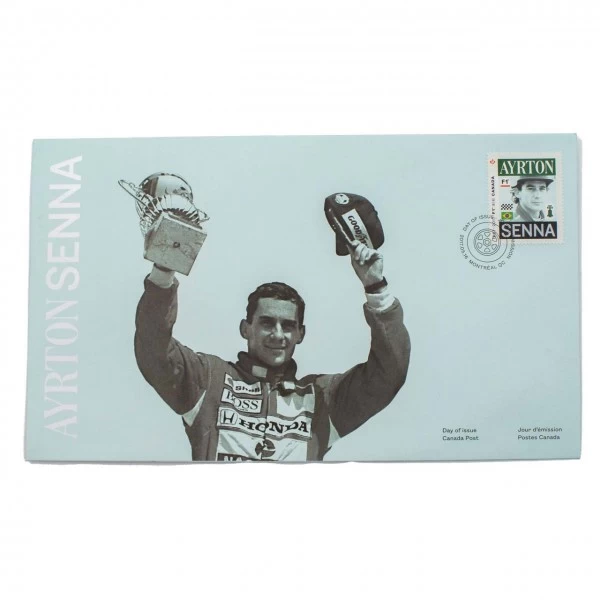 One of these collector’s stamps features Brazilian racing driver and two-time Canadian Grand Prix champion Ayrton Senna. This commemorative stamp was issued in a strictly limited edition of 680 pieces.