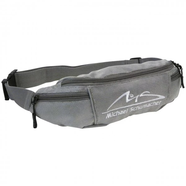 Silver beltbag with adjustable size and stitched Michael Schumacher logo on the front.