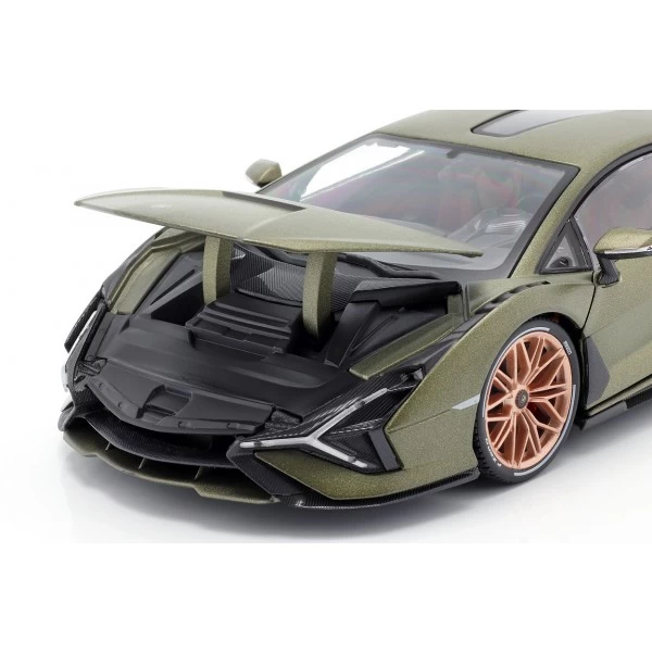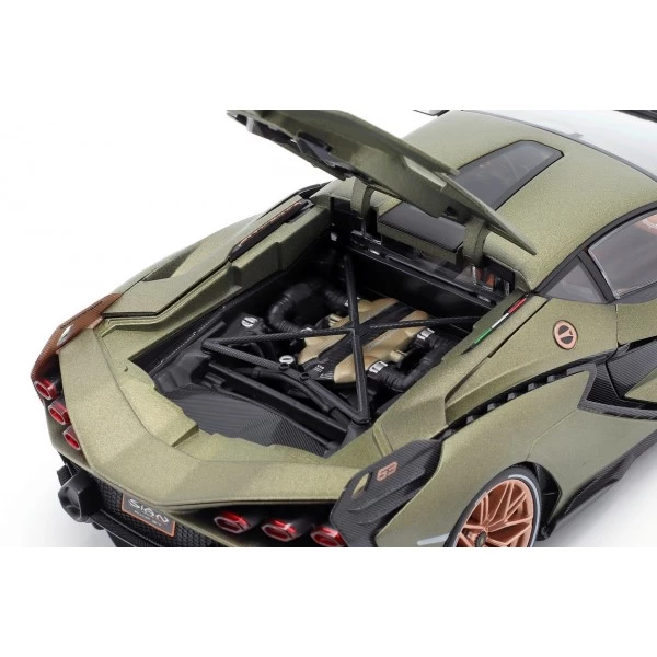 The Lamborghini Sian FKP 37 model year 2020 in matt olive green in scale 1/18