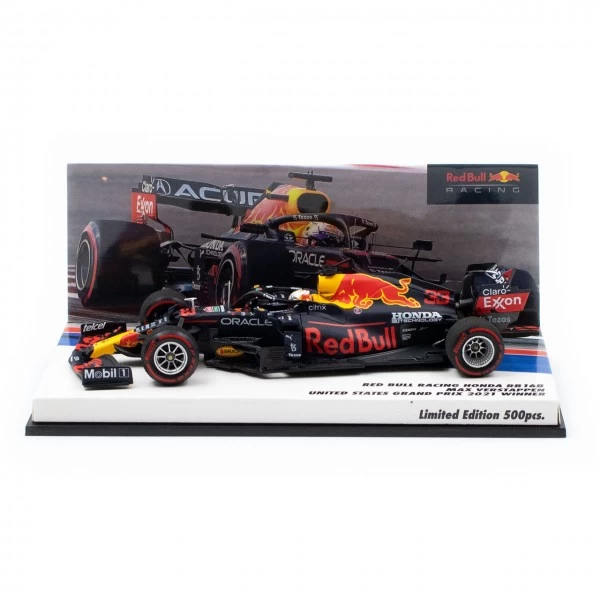 Max Verstappen Red Bull Racing Honda RB16B Formula 1 Winner USA GP 2021 1/43 scale model in limited edition.