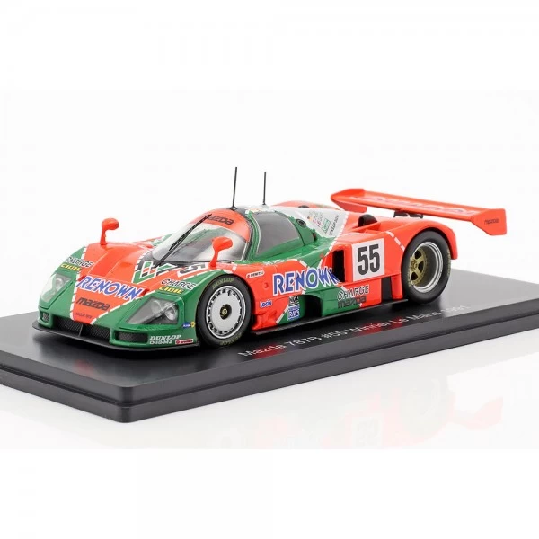 Model car of the Mazda 787B #55 on a scale of 1/43rd The drivers Volker Weidler, Johnny Herbert and Bertrand Gachot won the 24H race of Le Mans 1991 with this car.