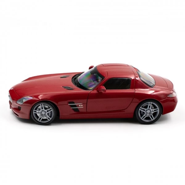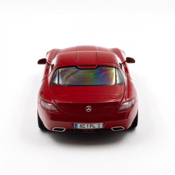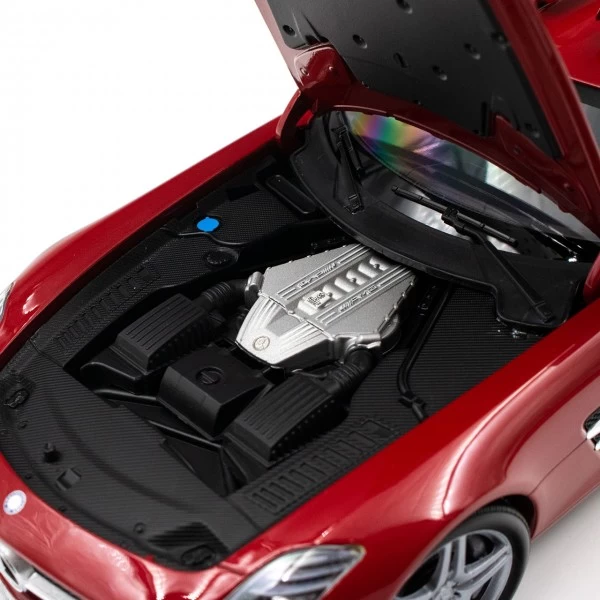 The Mercedes-Benz SLS AMG – 2010 – model in red metallic in 1/18 scale.