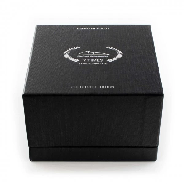 1/43 scale miniature model of the Ferrari F2001 in which Michael Schumacher competed at the 2001 Italian GP.
