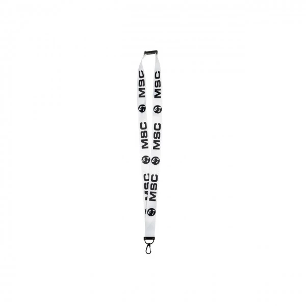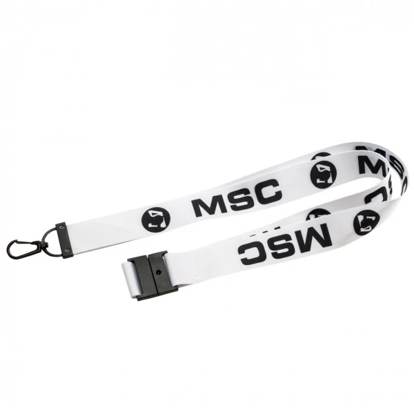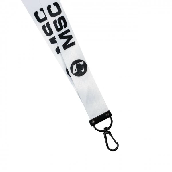 The Round Logo lanyard in white is printed with Mick Schumacher’s Formula 1 driver initials “MSC” and the driver logo, which is a combination of Mick’s profile and his Formula 1 starting number, in black. The lanyard is made of easy-care polyester and has a clip closure and an additional snap hook.