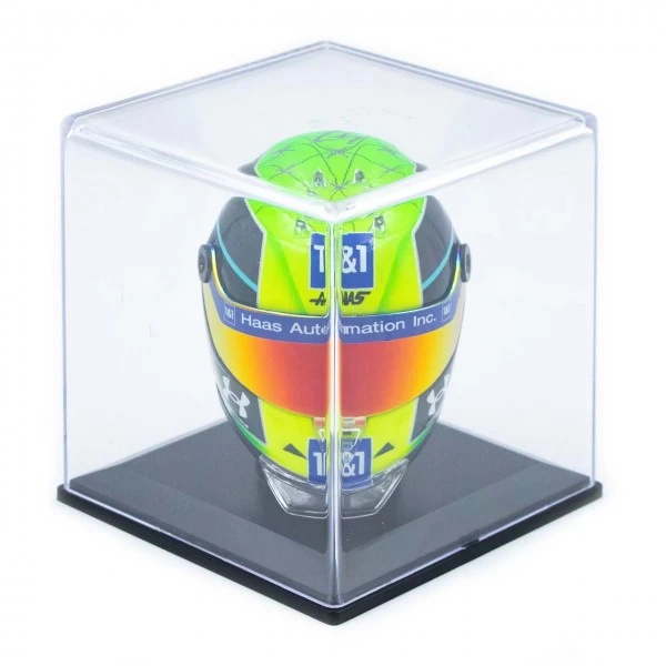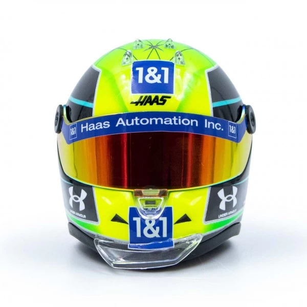 It is a faithful replica in scale 14 from the manufacturer Schuberth, who also produced the helmets of his father Michael Schumacher in addition to Mick’s helmets.