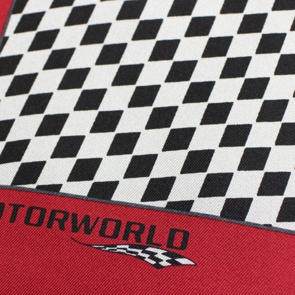 The silk scarf from the Motorworld collection. The square scarf in black and white chequered flag look has a red border with printed Motorworld logo. As a special accessory, the scarf made of 100% silk in a format of 50 x 50 cm is perfect in combination with the clothing articles from the Motorworld collection.