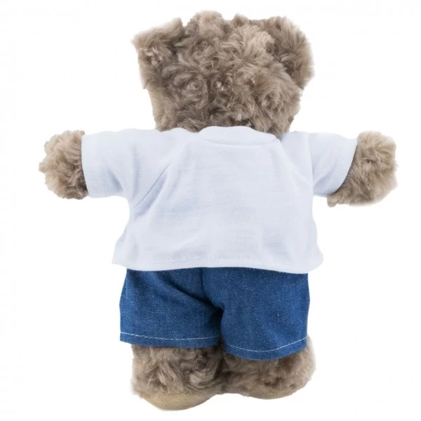 For the little fan of motor sports: the cute teddy bear from the Motorworld collection. The stuffed animal made of fluffy polyester wears blue dungarees and a white T-shirt with the Motorworld logo.