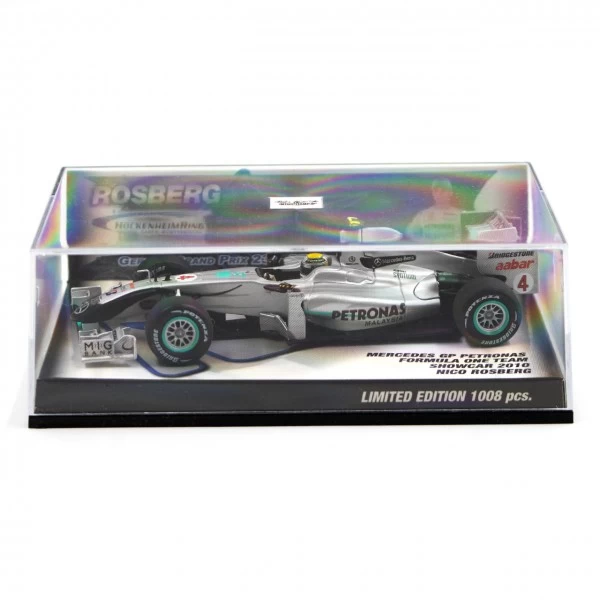 German Formula 1 driver Nico Rosberg started racing for the newly formed Mercedes GP Petronas F1 Team in the 2010 season. The 2016 Formula 1 World Champion scored several podium finishes in the 2010 season, ending up seventh overall. The model shows the show car at the German Grand Prix at the Hockenheimring.