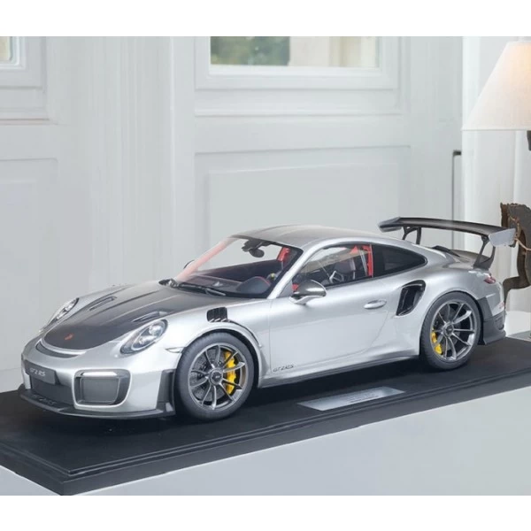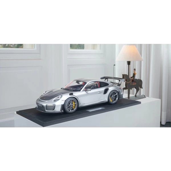 The Porsche 911 (991.2) GT2 RS – 2018 – 1/8th scale model incl. showcase, colour silver metallic