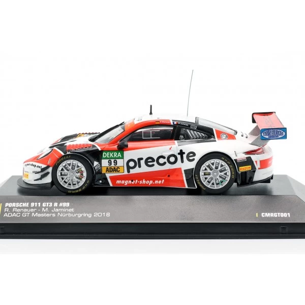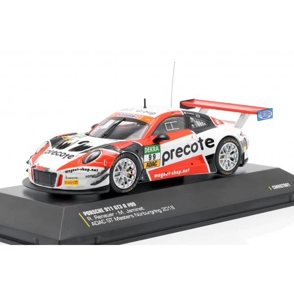 Miniature model in scale 1/43 of the Porsche 911 (991) GT3 R #99 from drivers Robert Renauer and Mathieu Jaminet. With this car the team Precote Herberth Motorsport achieved the 5th place in the 2nd race of the ADAC GT Masters Champion at the Nürburgring 2018.