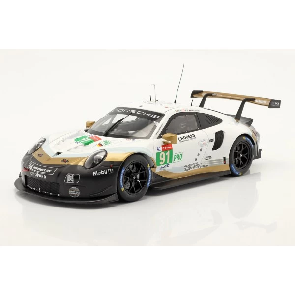 The Porsche 911 (991) RSR #91 24h Le Mans 2019 Lietz, Bruni, Makowiecki 1/18 scale model.