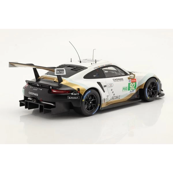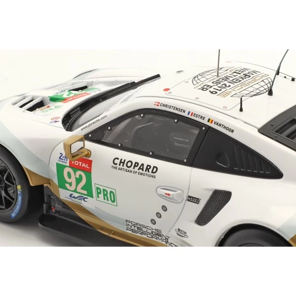 The Porsche 911 (991) RSR #92 24h Le Mans 2019 Christensen, Estre, Vanthoor 1/18 scale model.