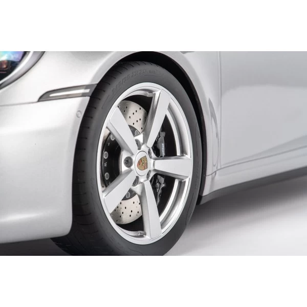 Porsche 911 (992) Carrera 4S – 2020 – 1/8 scale model incl. display case, colour Silver metallic