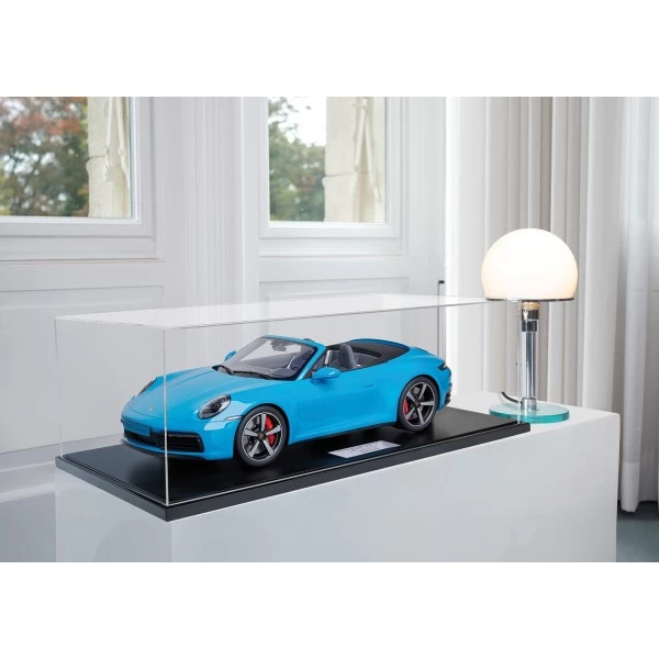 The Porsche 911 (992) Carrera 4S Cabriolet – 2020 – 1/8th scale model incl. display case, colour Miami blue