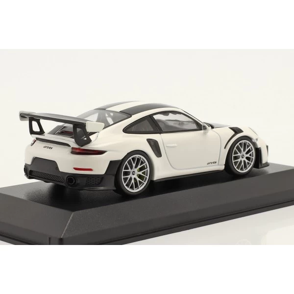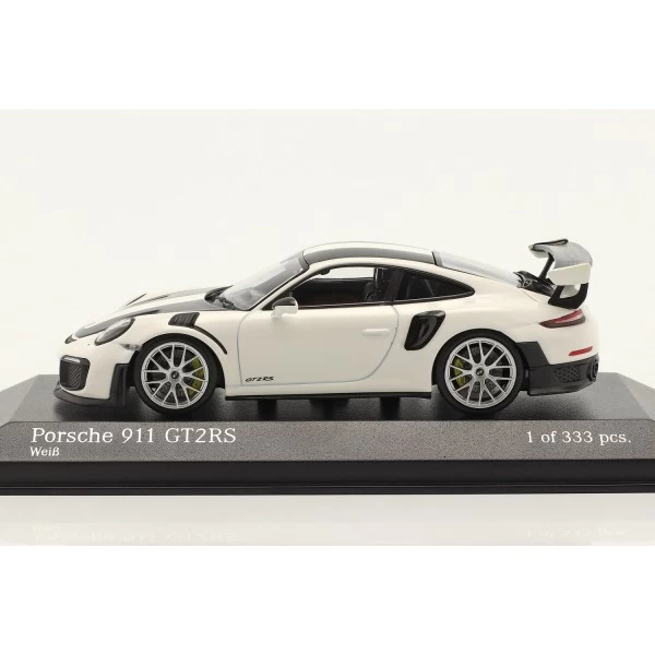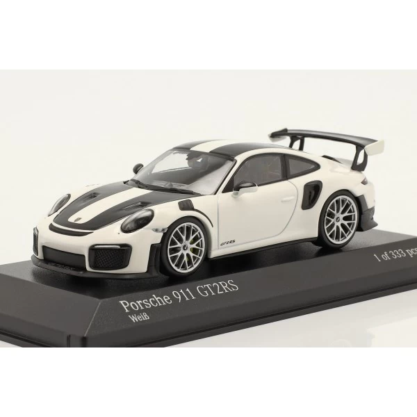 Porsche 911 GT2 RS Weissach Package 2018 1/43 scale model in white with silver rims.