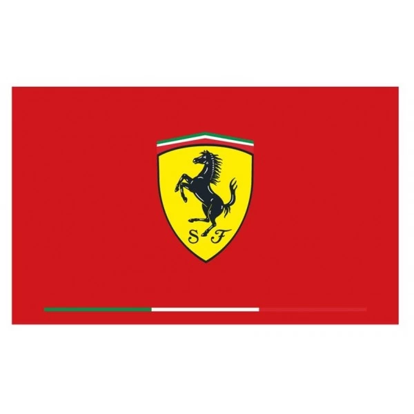 At the bottom of the flag is the Italian flag, in the middle is a large logo of Scuderia Ferrari.