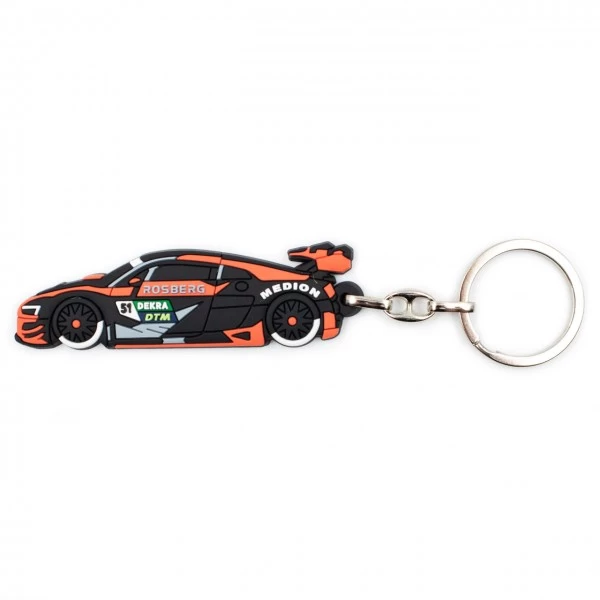 The Audi R8 LMS GT3 key ring from the Team Rosberg collection is made of durable polyester with a metal ring. It is made in the shape of the Team Rosberg Audi R8 LMS GT3.